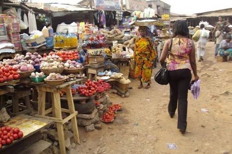 She moved skillfully inbetween tables of rotting tomatoes half-hidden beneath fresh ones. Fat healthy flies buzzed and danced without fear around them while the traders paid little or no attention to the flies, only calling out to passers-by to buy their tomatoes.